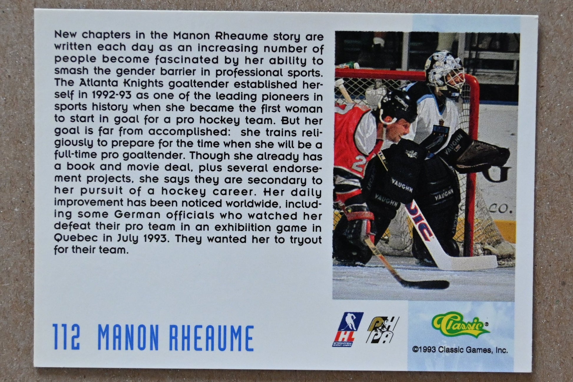 1993 Classic '93 Hockey Draft #112 Manon Rheaume